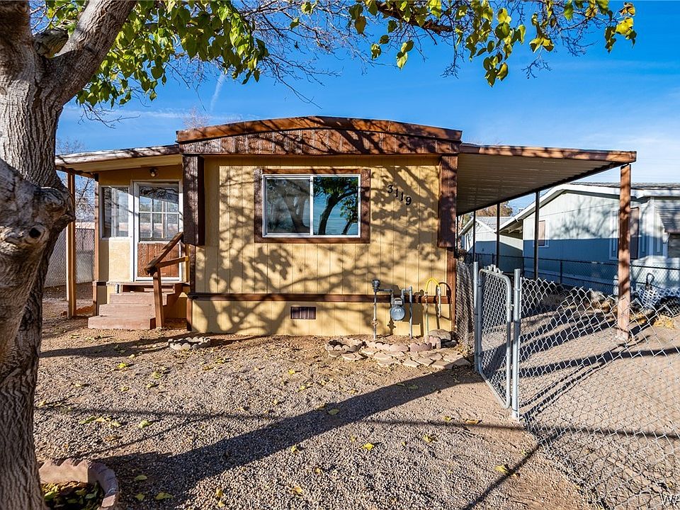 Welcome to this beautifully updated 1983 manufactured home, a true gem that has been transformed from top to bottom! This 2-bedroom, 1-bathroom residence has undergone an extensive update, bringing modern comforts and style to every corner. Step inside and experience the charm of a brand-new interior, down to the studs. The spacious living areas are adorned with fresh drywall, creating a crisp and inviting atmosphere. A contemporary color palette graces the walls, complementing the stunning new flooring that flows seamlessly throughout the home. The heart of this dwelling is the redesigned kitchen, boasting appliances, sleek cabinetry, and stylish countertops. Cooking and entertaining will be a delight in this modern culinary haven. The bathroom has been completely revamped, featuring new fixtures and finishes, creating a spa-like retreat for relaxation. Both bedrooms offer cozy spaces for rest and rejuvenation, with ample natural light enhancing the welcoming ambiance. Beyond the interior, the exterior of the home has not been overlooked. A fresh coat of paint revitalizes the facade, enhancing curb appeal and creating a lasting first impression. The fully fenced yard ensures privacy and security, providing a safe space for pets and loved ones to enjoy. Two covered and enclosed porches extend the living space outdoors, offering the perfect spot to unwind or entertain guests. The large landscaped yard is a haven for nature enthusiasts, adorned with mature trees that provide shade and tranquility. This residence offers not only a comfortable living space but also a connection to the beauty of the outdoors.