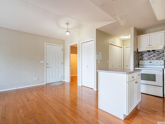 Discover affordable living in a prime Gardiner Heights location with this move-in ready 2-bedroom second floor condo, featuring a stylish blend of hardwood flooring and ceramic tile throughout. The open-concept layout includes a dining area and a functional kitchen with a movable island, perfect for entertaining. Both bedrooms are spacious with large closets, and the unit offers a 4-piece bath, convenient in-suite laundry, and a covered balcony for year-round enjoyment. Two parking stalls are included, and the property is ideally situated near east-end amenities, the University of Regina, and even has a Dairy Queen just steps away for your sweet tooth cravings. Immediate possession available — contact your realtor today to book a showing!
