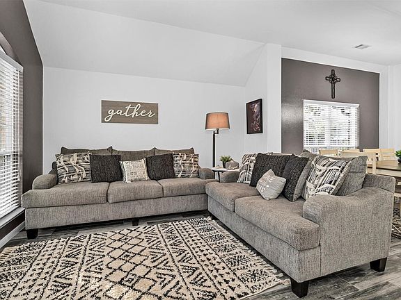 This 1.5-story home in gated Legends Ranch offers 3,612 sq ft on an approx. 7,800 sq ft lot with 5-6 bedrooms, 4 full baths, and a 2.5-car garage, for extra storage. The open layout includes a formal entry, family room with fireplace, dining area, office/flex room, and a remodeled kitchen with walk-in pantry. Upstairs loft is perfect for media, games, or a MIL suite plumbed for a sink. Primary suite features dual vanities, separate shower and tub. Recent upgrades include new roof w/solar vents, first-floor tile flooring, remodeled bathrooms, and luxury vinyl in upstairs suite. Enjoy community amenities: junior Olympic pool, splash pad, tennis/basketball courts, trails, and sports fields. Zoned to Conroe ISD with easy access to Grand Parkway & I-45. See attached form for full list of improvements.