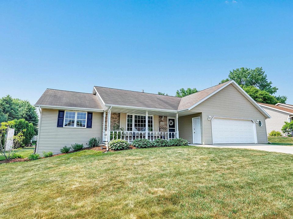 Beautifully maintained, open concept, split bedroom ranch in sought after Howard neighborhood. Upon entry, revel in large living room with vaulted ceilings & gas fireplace that flows seamlessly into the dining room w/sliding glass door leading to a spacious backyard w/ a patio for relaxation. Kitchen offers ample storage. Master suite w/ double vanity & large linen closet. 1st floor laundry w/ backyard access. Additional entertainment space in the finished basement featuring 1/2 bath (that is ready for a shower) & dry bar w/ additional storage.