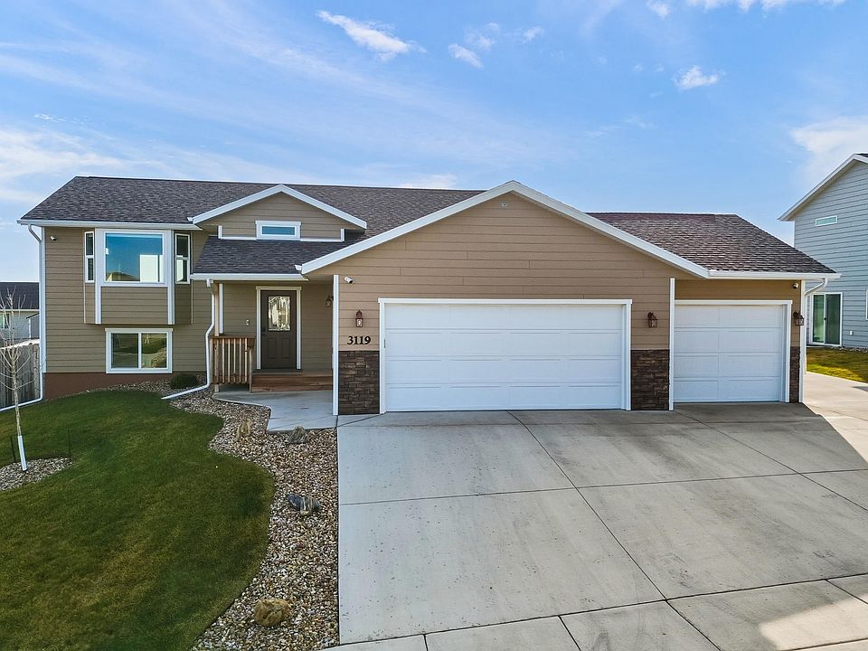 Welcome to 3119 Jessup Lane—an immaculately cared-for 1-owner home built in 2022 that still feels brand new. This inviting split-foyer features 2 bedrooms and 2 bathrooms on the upper level, including a comfortable primary suite. Enjoy an open-concept living room, dining room, and kitchen with like-new finishes (the dishwasher has never been used!). Step onto the spacious deck overlooking an established yard with irrigation, a dedicated dog area, powered shed, and RV parking. The lower level offers a generous family room, 2 additional bedrooms, a 3rd bathroom, a large laundry room with utility closet, and a bonus storage room perfect for an office, hobby space, or garden room. A finished and heated 3-car garage complete with an additional 220v outlet and work bench provides plenty of space and convenience. Security upgrades include 8 hardwired night-vision Lorex cameras (no subscription), a professionally installed Hale dog door, and MORE! Move-in ready, beautifully maintained, and thoughtfully upgraded—this home truly has it all. Located close to schools, shopping, and the I-90 corridor, you do not want to miss this one!