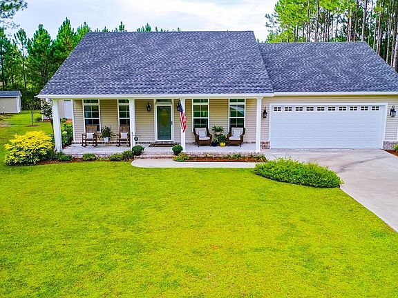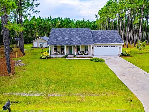Welcome to Rhett Cir. This home is occupied by the original owner and is like new and move-in ready for the next homeowner. As you enter from the front porch, living room displays LVP flooring and gas fireplace. Kitchen with island, oven/range, microwave, refrig, dishwasher, lots of cabinets and corian counter tops. Dining area. Master bdrm with LVP flooring and WIC and master bath with add'l WIC, double sinks, garden tub and tiled shower. Add'l bedrooms are nice-sized with LVP flooring. Guest bath is tiled with tub/shower combo. Tiled laundry room. Great back screened porch area for relaxing/entertaining. 2-car garage. Chain link fenced backyard. 18x31 outbuilding with shop area and lean too with power, as well as an established chicken coop area. This home is worth the touring as it is very show worthy, and the yard is already established with great landscaping. Best of all, home sits on 3,1 ac and homeowner owns adjoining 3,3 ac, so a total of 6.4+/- ac altogether. HVAC new 8/23.