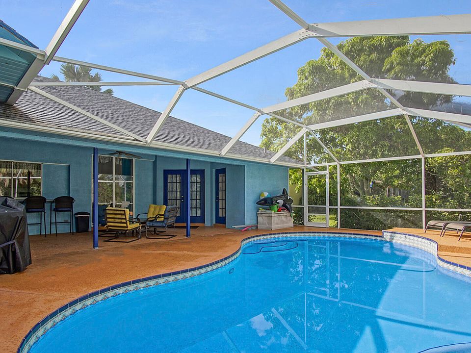 Opportunity to own this meticulously maintained pool home with an amazing Floor plan, situated on a large lot backing onto a forested area not designated for development. Desirable non-HOA community with easy access to the Turnpike, I-95, shopping and only 20 minutes to the beach. Spacious living areas with pool views and a great kitchen with pass-through window to patio bar counter. Two walk-in closets in the master bedroom and a master bath with double sinks, soaker tub and a separate shower. Screened pool with garden views and large patio perfect for entertaining. This home has amazing Airbnb potential or make it your primary residence. NEW ROOF IN 2016