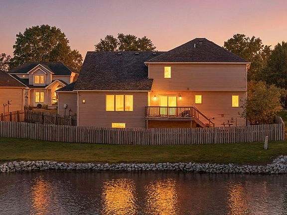 This exceptional 4-bedroom, 3.5 bath home with a finished basement offers the perfect blend of comfort and style. Overlooking a peaceful pond in a desirable location. Step inside to find real eucalyptus flooring throughout the main level, accented by large windows that fill the space with natural light. The spacious living room is open to the beautiful kitchen which includes an island and a granite farmhouse sink. The large dining area is seamlessly connected to the kitchen and is perfect for hosting all your gatherings. A large laundry room with additional storage doubles as a panty, while the spacious entryway and half bath complete the main floor. The primary suite is generously sized with a walk-in closet and ensuite bath featuring a double-sink vanity. The finished basement is built for entertaining, a large wet bar with a wine cooler, mini fridge and sink. The open living area, full bath and built-in murphy bed make it the perfect retreat for your guests, while a built-in desk area offers space for a home office or gaming center. Outdoor living is just as enjoyable with a deck overlooking the water and a fenced-in backyard, ideal for children and pets. This home delivers the total package at a fantastic price. 1-year HWA home warranty is included.