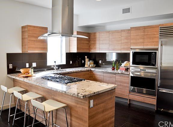 3 Bed 2 Full Bath, single level, NOT on land lease, bright interior, great views, 2010 built-Latitude 33 BOARDWALK COLLECTION. This former model with high ceilings, hardwood floors, and an open kitchen. The kitchen is equipped with top of the line Bosch Dishwasher, SUB-ZERO refrigerator, WOLF oven and WOLF range top, SUB-ZERO wine chiller, kitchen drawer file cabinet system. The master bedroom has an in-suite bath, dual-sinks with separate tub and shower. Living room area has beautiful distressed hard wood floors. Parking garage has two assigned parking spaces, building features incl/ concierge, ample guest parking, and state of the art gym. Latitude 33 features 24 hour security, concierge, and state of the art gym. Located close to the beach, Venice pier, and surrounded by world class dining/entertainment.