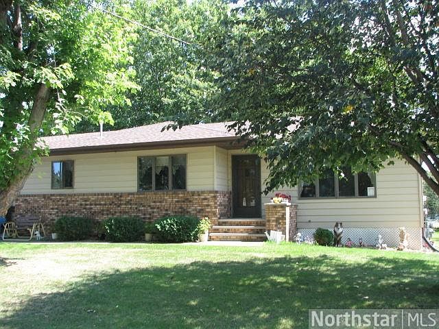 Sharp looking 3 BR walk-out rambler on a spacious city water and sewer lot. Brick & steel exterior. New shingles August of 2012. Raised panel kitchen cabinets. Storage shed has new shingles. 26x28 attached garage.