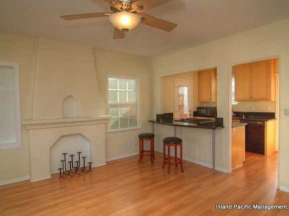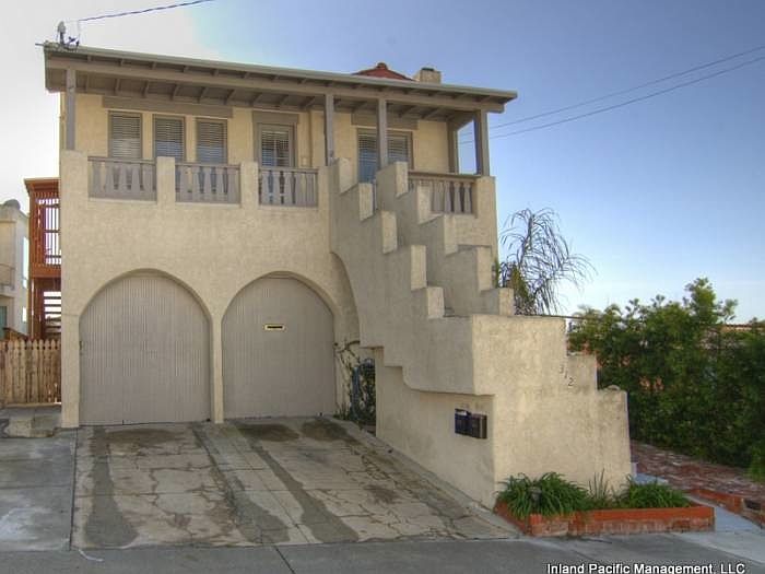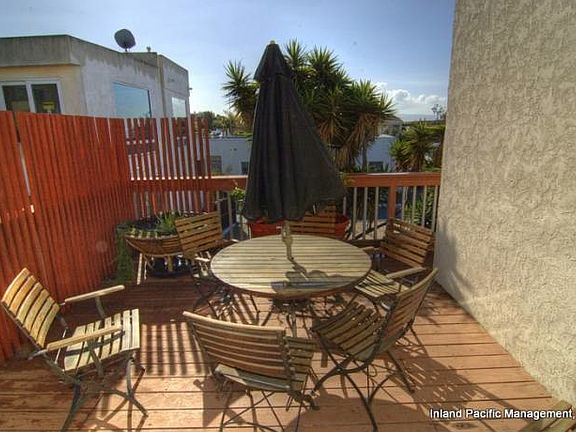 Remodeled upper unit with ocean view! 2 bedroom, 1 bath with private balcony. Hardwood floors and granite countertops. Appliances include stove, dishwasher, refrigerator, and *microwave. Storage in garage. 1 driveway parking space. Parking permit available through city. Steps to Valley Park and 3 blocks to beach. No pets. *Items are for convenience only. Owner will not repair/replace.1 year lease. Good credit required. No pets. No smoking.