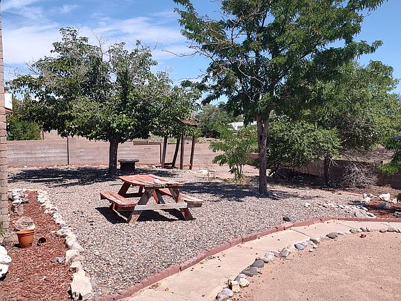 Freshly painted cute 3 bed 2 bath home. Includes washer/dryer, large backyard with great view of the Sandias, 2 car garage and space to park an RV. Close to great schools. Dogs allowed, no smoking. Renter is responsible for gas, electric and water. Owner pays trash. No smoking. All dogs allowed.