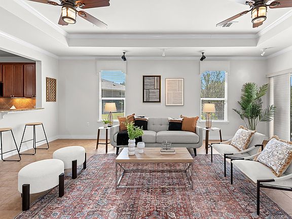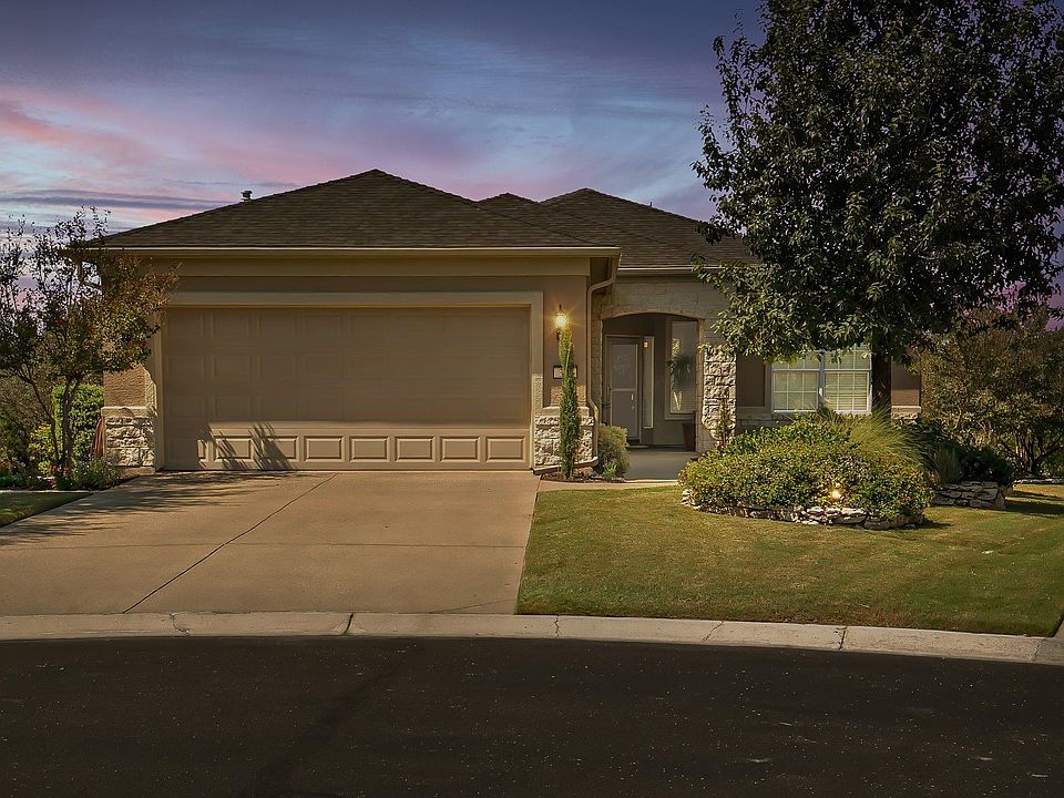 Looking for privacy, in a move-in ready home? This Surrey Crest is on a cul-de-sac, greenbelt lot, and with the built-in firepit under the covered extended patio, the sunsets are yours to enjoy. Automatic SunSetter awning, wood and tile floors (no carpet), interior painted Sept. 2025, exterior painted Mar. 2025, it is move-in ready! Office with wall of built-ins by California Closets has french doors, and greenbelt views. Spotlights for your special pieces of art, Bose surround sound, professionally landscaped yard, tray ceilings in living and bedroom, full-length glass storm door, and we're just getting started! Garage has overhead storage racks, cabinets, and epoxy coated floor and driveway. Partially fenced yard plus an Invisible Fence system. Upgraded baseboards, whole house water filtration system and water softener, and solar tube in kitchen. Sunny laundry room offers more storage, and sink too. Level driveway and no steps in front or garage. If being a part of Sun City's 55+ community is next on your list, this home is ready and waiting- just unpack your bags! Pre-inspected also, for your buying confidence. 2020 roof with transferrable warranty.