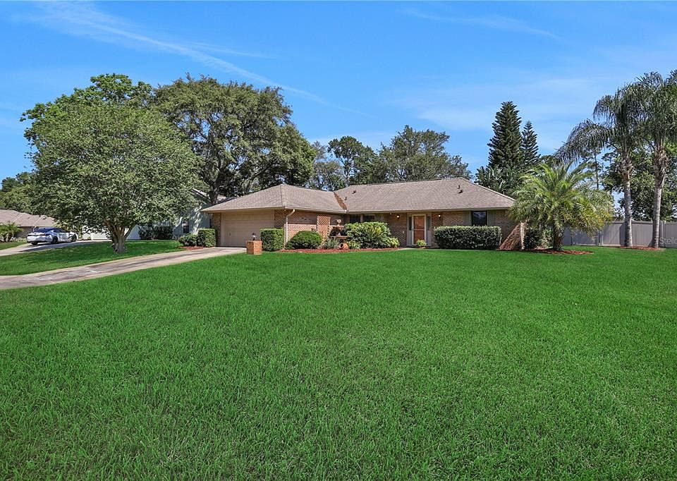 MOTIVATED! Immaculate, custom-built residence nestled in the highly sought-after Woodbound Lakes community. Meticulously maintained, upgraded, and updated with replaced flooring, updated bathrooms, newer AC, and more, this charming brick home boasts a thoughtfully designed split floor plan accentuated by double pane windows, elegant French doors, and ample walk-in closets. The kitchen has a new LG stove with a built in air fryer.The heart of the home showcases solid wood raised panel cabinets in the kitchen, complemented by a spacious primary bedroom featuring a luxurious newly remodeled primary bathroom and an oversized tile walk-in and a rain shower head. Step outside to the expansive screened and covered patio, seamlessly accessible from the eat-in kitchen and guest bath, offering the perfect retreat for relaxation or entertainment. With plenty of space for a potential pool, the privacy fencing encloses the sizable backyard, providing an oasis of tranquility and theres a 10X12 aluminum shed featuring pre-cut hurricane window boards. Conveniently located just 30 miles from downtown Orlando, 30 miles to New Smyrna Beach, and less than an hour's drive to Disney, this residence offers the ideal balance of suburban serenity and accessibility to major attractions. Additionally, a termite bond is in place, ensuring peace of mind for the discerning homeowner. This property may be under audio/visual surveillance.