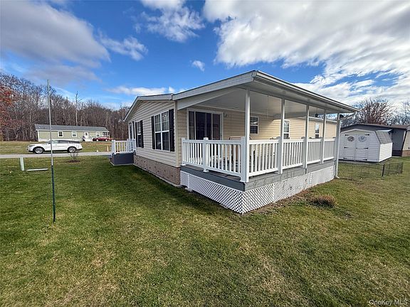 Come discover this beautifully maintained home where pride of ownership truly shines, offering exceptional one-level living in the desirable Brittany Terrace 55+ community of Rock Tavern. This bright and spacious 2–3 bedroom, 2-bath home features 1,568 sq ft of comfortable living space with a well-appointed kitchen boasting abundant cabinetry, ample counter space, maple cabinets, a cook-top island, double sink, breakfast nook, and a formal dining area. The semi–open layout flows into a warm and inviting living room with a gas fireplace and elegant mantle. The primary suite includes a walk-in shower, large walk-in closet, and double vanity, while an additional bedroom, a den with French doors (ideal as a third bedroom), and a full guest bath provide excellent versatility. Sliding doors off the breakfast nook lead to an oversized covered back deck—perfect for relaxing outdoors. Additional highlights include sheetrock throughout, central air, a covered front porch, laundry room with matching cabinetry, a storage shed, and paved driveway. Recent upgrades include a 1-month-old dishwasher, 1-year-old refrigerator and central air system, 2-year-old water heater and washer/dryer, and a 1-year-old microwave—simply move right in. Built in 2006, this home is bright, open, and welcoming, with community lake access and required board approval. Conveniently located just 60 miles from NYC with easy access to I-84, I-87, Route 17, Stewart Airport, Salisbury Mills train station, buses to NYC, shopping, dining, wineries, hiking, and more—this home offers the perfect blend of comfort, convenience, and Hudson Valley charm.
