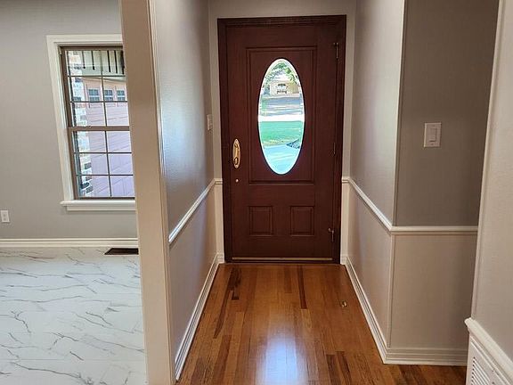 New wood fencePecan flooringPrivate officeSpacious back porchGood storageLarge yardNew interior cabinets