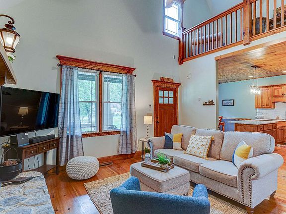 Discover a stunning riverfront home for sale in the serene Cartecay River Estate Subdivision in Ellijay, GA. Experience the best of small mountain town living with a luxurious twist. This breathtaking craftsman-style home boast over 100 feet of riverfront, making it the perfect place for entertaining and outdoor activities. The flat 1.14 acre lot also features a 4-rail wooden fence in the backyard, ensuring that your furry friends stay contained. The property provides easy access to Cartecay River without any steep climbs. The home has undergone recent upgrades, including new windows, roof, appliances, quartz countertops in the kitchen with tile back splash, updated bathrooms, a fresh coat of exterior and interior paint, fence, Trex deck and hand rails, new A/C upstairs and hot water heater. The main level has a spacious master suite and laundry room, while the second level features two large bedrooms and loft area. This fabulous well-maintained home combines timeless classic touches along with all the modern conveniences you'd expect in todays home. This is truly a must-see riverfront home if you are seeking a convenient and beautiful luxury mountain living experience.