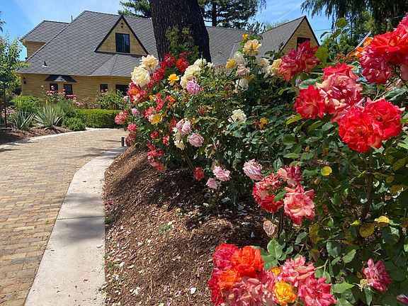 - Private rose garden entry; Friendly parking; View of redwood trees