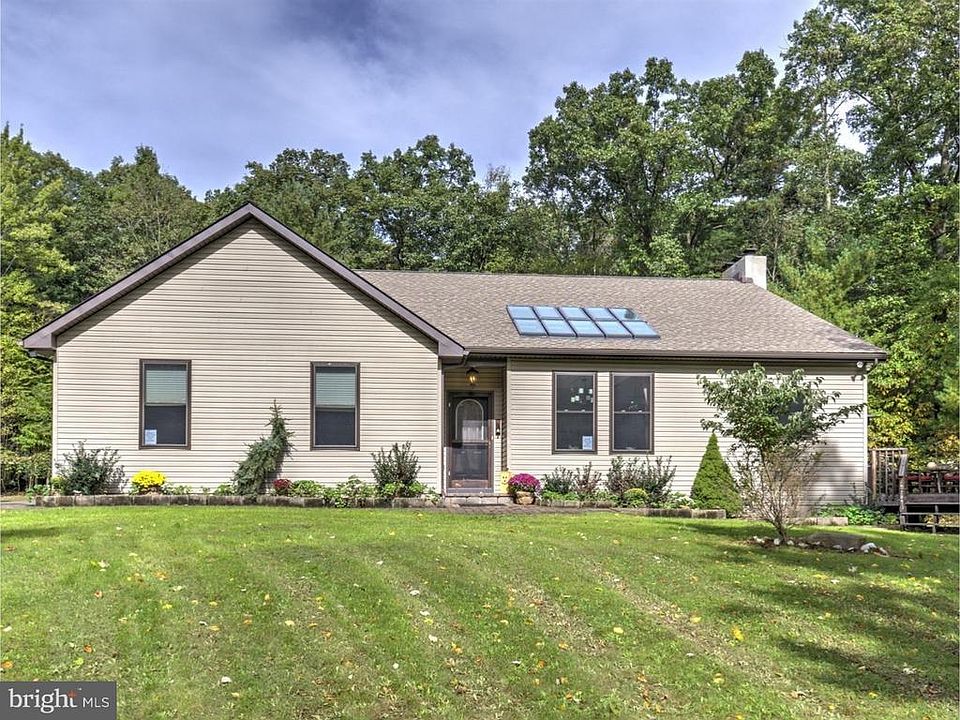 Find this wonderful 6.3 acre woodland retreat tucked away on Deer Trail Dr. Enter the front door to the expansive great room - a beautifully tiled, open-concept living room, dining room and kitchen with large skylight and custom wood-burning fireplace. The fireplace was crafted from Schuylkill County Mountain Stone. The mantle was formed from one of the property's Hemlock trees. French doors lead to the generous deck for relaxing and entertaining. Also on the main floor are 4 bedrooms, 2 full baths and the laundry room. The master offers an over-sized bath with stand up shower, claw foot tub and his-and-hers closets. Step through the sliding door from the master onto a private deck already wired for a hot tub. Downstairs find over 1600 sq ft of additional living space, which includes 2 optional bedrooms, a family room with kitchenette, a half bath and a fully equipped fitness room with sauna. A brand new HVAC Heat Pump was installed this year, as well as new carpet, tile and paint throughout. Electric baseboards and a Reading coal stove can provide back-up heat. The attached 2 car garage offers a large ready to be finished second floor for your home office or other needs.