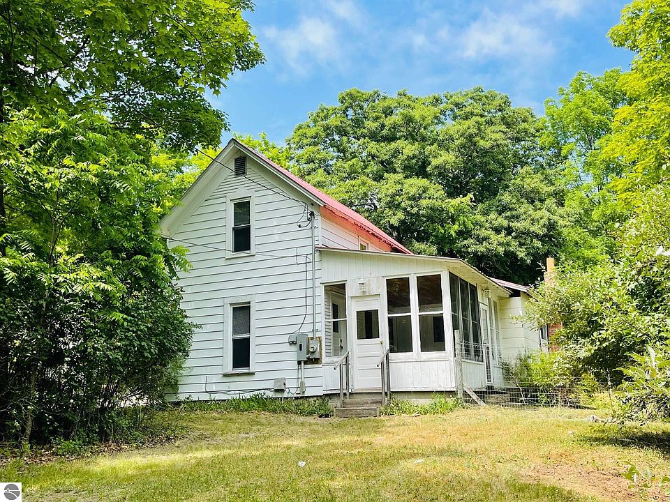 Classic farm house style home totally and tastefully remodeled located on outskirts of Village of Bellaire in popular Terrace neighborhood. Features include newer windows, hardwood flooring, 3 season sun porch, newer furnace, electric service & water heater, stainless steel appliances, ample closet space, garage & small barn, metal roof, large private back yard overlooking woodlands and all within walking distance of downtown Bellaire & all it has to offer. New siding and a little tender care would make this place shine. Build your own equity at this affordable price.