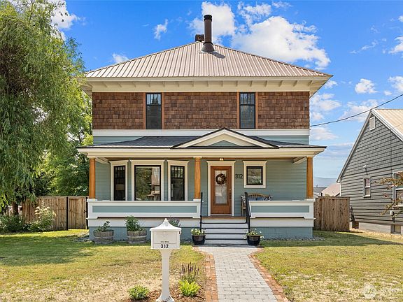 Discover the perfect blend of vintage elegance and modern amenities in this stunningly revived 1900s home. Restored hardwoods, beadboard ceilings & beautifully wood-wrapped Milgard windows throughout set the tone. Gorgeous remodeled kitchen with cozy nook is perfect for entertaining. Versatile main floor room is adaptable as a bedroom or office. Upstairs offers three bedrooms & a signature bath anchored w/an antique clawfoot tub. Original wood siding has been meticulously restored to its full beauty w/cedar shake accents added to reflect historic photos. Updates include new HVAC system, electrical panel, light & plumbing fixtures, all windows. Enjoy a new back deck, 6' cedar fenced yard & 24x32 shop. This home radiates quality & character.