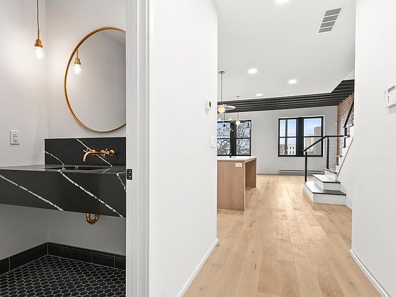 The 2 story 2 bedroom unit has marble and hardwood floors, GE Cafe appliances, caesar stone countertops, multiple storage areas and rear balcony. High ceilings with rafters and exposed brick maintain the historical charm while the modern updates suggest a contemporary Euro flair.