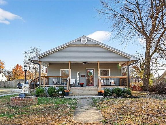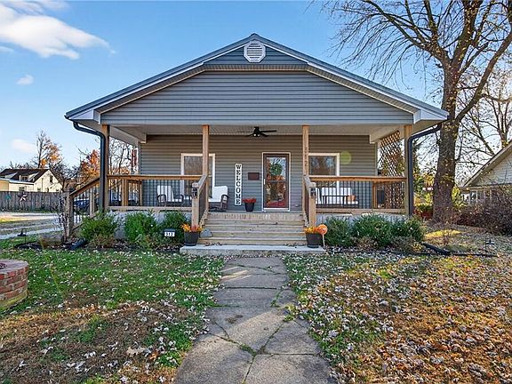 As you approach this beautiful bungalow style home, immediately you'll feel welcomed entering the large covered front porch with outdoor seating. The list of impressive qualities of this home is long, having been completely remodeled from top to bottom w/new electric, heat & air, gutters & downspouts, vinyl siding, thermal windows, flooring & much more, using the best in quality, design & energy efficiency. The open layout between the living room & kitchen allows for ease of entertaining. You'll absolutely love the kitchen! Featuring luxury vinyl plank flooring, new stainless appliances, custom painted cabinetry/pantries, cooking island w/built in flat cooktop & butcher block counters throughout. The modern hanging light over the cooking island & coffee bar is the perfect touch to this country inspired kitchen. Each bedroom in the home has a modern slider barn-type door, carpet & ceiling fans/lighting. The primary bedroom with ensuite full bath is spacious and comfortable, featuring a 13x8 walk in closet, made with space for a home office, nursery or other use. The full ensuite bath has ship lap walls, modern sink & vanity giving the room a sleek look. You won't lack for storage space in this home, as the new walk in laundry room has storage galore with double pantry cabinets. A concrete floor (cellar type) 1/2 basement provides additional storage & shelter use, during spring storm season. The outside of the home is as impressive as the inside w/year around interest & updates. Enjoy the attached, covered, back porch with night lighting, retractable screen door, & space for outdoor dining. For summer fun, a 20' above ground pool w/a large deck & pergola was installed in 2025. If you love to garden, raised garden beds are established for fresh produce to enjoy for months to come. While cool weather is upon us, spend your evenings at the cozy firepit seating area, making smores & relax after a long day under the stars. The work has been done. What a great investment!