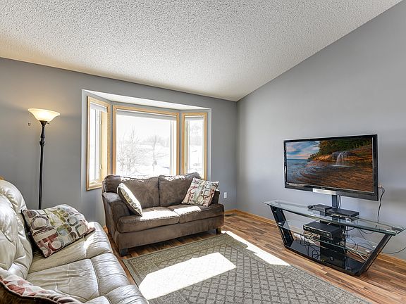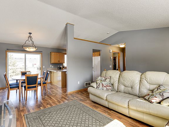 4 bed 2 ba, 3 car garage, The upper living room has vaulted ceilings & boasts a beautiful Bay Window in the living room, Bright and open. Deck perfect for relaxing and enjoying the outdoors. Wonderful yard that is fenced flat and fantastic for entertaining or any other activities you may enjoy. There are robust pine trees in the yard for added privacy. This home is located in Isanti which has some of the best recreational activities in all of MN, a community garden, indoor BMX bike arenas.