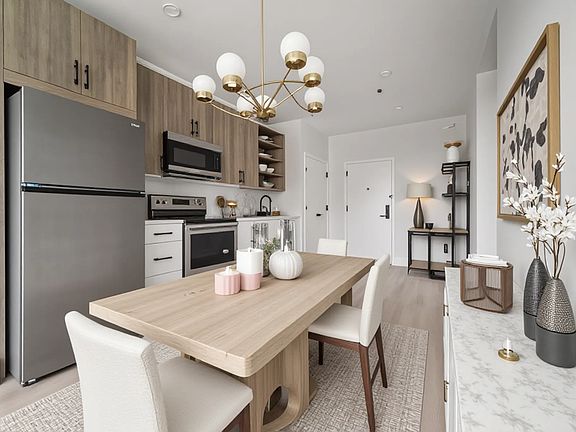This boutique elevator building provides secure entry, package area, bike storage, and a rooftop deck with city views. Pets are welcome.