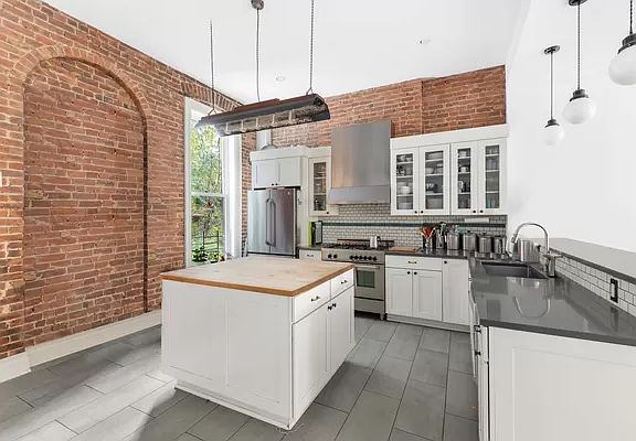 Experience spacious brownstone living at its best in historic Clinton Hill. 312 Greene Avenue is a turn-of-the-century, five-floor, three-family gem featuring ample original details combined with tasteful and recent interior updates. On a generous 20'x100' lot, located on a leafy block with excellent subway access, its three-floor owner's triplex has its own private garden access, while also generating excellent income with its two legal 2-bedroom apartments on the upper floors, one with a private balcony. Enter through its grand stoop, beneath the original brownstone overhang and cornices and double-door vestibule, to the elegant parlor floor foyer. The central staircase includes a beautifully-restored historic newel post and banister, inlaid wood flooring and decorative crown molding. As part of the owner's three-bedroom triplex, the parlor floor features a large chef's kitchen arched with exposed brick details, a center island, a professional-grade stove and hood, and an open dining/living floor plan for comfortable entertaining. The owner's triplex includes in-unit laundry and a spa-like master bath. Unusually, three out of the five floors includes private, southern-exposure outdoor spaces, a true urban rarity - you can choose to either enjoy the back garden or sip coffee and cocktails on one of the two elevated decks. Five oversized and renovated bathrooms ensure modern comfort and convenience. The entire building clocks in at a whopping nearly 4,000 SF, ensuring plenty of space, comfort and privacy for all residents. Spread out and enjoy all five lovely levels, or enjoy the income generation possibilities: either way, you're truly living the Brooklyn brownstone dream at 312 Greene Avenue. Showings are only by appointment