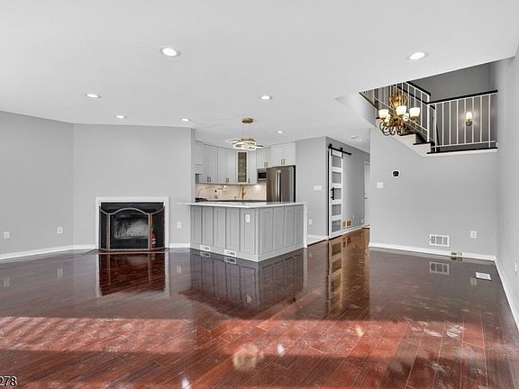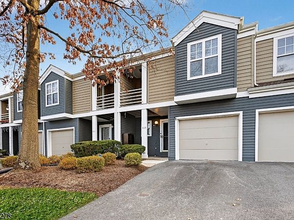 Welcome to this completely renovated 3-bed, 2.1 bath townhome in the highly sought-after Crossroads community, perfectly situated in one of the best locations backing to a private, wooded lot for exceptional privacy. This freshly painted home features an open floor plan with engineered wood floors throughout, creating a warm & modern feel. The main level offers a spacious living & dining area with recessed lighting & a cozy wood-burning fireplace. The beautifully remodeled kitchen (2024) showcases quartz countertops, newer stainless-steel appliances, extra cabinetry, & excellent workspace for cooking and entertaining. Sliding glass doors from the living room lead to a private patio overlooking a peaceful open lot. The second floor boasts a large primary bedroom with a private balcony, walk-in closet with custom organizers, and an updated en-suite bath with double sinks. Two additional generously sized bedrooms feature ceiling fans, and the conveniently located second-floor laundry adds everyday ease. The hallway bath is updated with a modern vanity and soaking tub. The finished basement expands your living space with engineered wood floors, a stylish bar with quartz countertop, and a media room ideal for entertaining or relaxing. Additional highlights include Blue Ribbon schools and a prime location close to shopping, dining, NJ Transit, and major highways including I-287, I-78, Routes 202, 206, and 22. A move-in-ready home offering privacy, style, & unbeatable convenience.