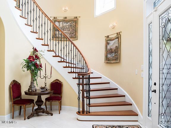 Welcome to 312 Harrier Court, a luxury brick waterfront estate that defines elegance and comfort. This expansive 4,700 heated square foot home offers 4 bedrooms and 4.5 bathrooms, including a versatile study that can easily serve as a 5th bedroom. Upon entering, you'll be greeted by a grand foyer that leads into a formal living room and formal dining room, perfect for hosting sophisticated gatherings. The home boasts stunning crystal chandeliers, Brazilian cherry hardwood floors and a marble dual-room fireplace. The chef's kitchen is a culinary delight, featuring double ovens, a gas range cooktop and a wet bar with a wine cooler and ice maker. Adjacent to the kitchen, enjoy meals in the breakfast nook or retreat to the sunroom for a serene view of the outdoors. Entertainment options abound with a billiards room and an adjoining theater room outfitted with 5 leather recliners and all necessary equipment for a true cinematic experience. This home is equipped with modern amenities including surround sound inside and out, a central vacuum system with new motor (2024), a whole house water softener system, and smart wiring for cable and internet in all rooms. The primary suite is a luxurious retreat on the first floor featuring a spa-like bathroom with heated tile floors, dual vanities plus a makeup vanity, tile shower, a large soaking tub, and two walk in closets. Over the 3 car garage, you'll find an additional suite with its own private staircase and full bath—ideal for guests or a private office. Outside, enjoy the 80ft Trex pier with a gazebo featuring a lower step down deck with swim ladder. The property features a vinyl bulkhead that was recently replaced (2022). Pelican Pointe offers many community amenities including a private pool with clubhouse, playgrounds, tennis courts, basketball courts, and boat ramp. Don't miss your chance to experience the perfect blend of luxury and functionality in this remarkable home.