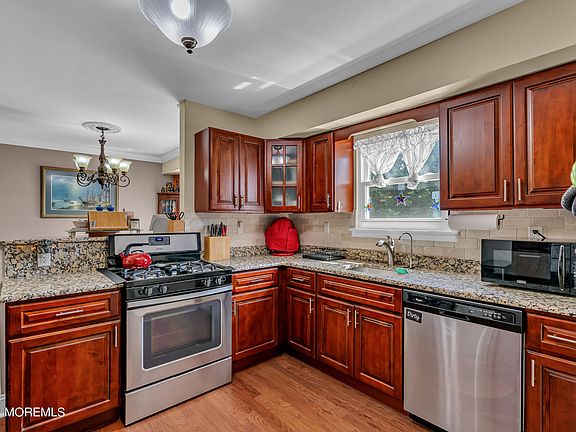 Welcome to your dream home in Herbertsville! This move-in ready colonial home offers worry free living with a new roof (2021) and modern convenience in a prime location. There are 3 bedrooms (possible 4th bedroom on first floor with its own separate entry) and 1.5 bathrooms. Step inside to discover an updated kitchen featuring sleek granite countertops, a stylish tile backsplash, and a walk-in pantry. Crown molding, hardwood floors, and recessed lighting add an elegant touch throughout the house. The garage has been cleverly converted into a versatile bonus room, with a portion reserved for storage. Outside, enjoy the privacy of a fenced yard complete with a deck and a large outdoor shed equipped with electricity. Located close to Point Pleasant Beach, parks, restaurants, and shopping destinations, this home offers the perfect balance of tranquility and convenience. Schedule your showing today!