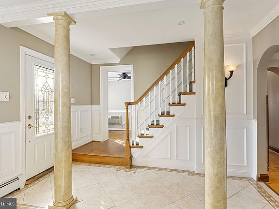 Welcome to this versatile, spacious, light filled, Westgate Hills home offering three upstairs bedrooms and a first-floor office (which can also serve as a fourth bedroom). From the tiled entrance hall, you can enter the formal living room on the right, with its cozy gas fireplace, then pass through french doors to the intimate formal dining room, which features crown molding and an elegant tray ceiling. Or you can proceed directly to the kitchen, which is a chef’s delight with abundant cabinetry, granite countertops, a breakfast bar, under-cabinet and in-cabinet lighting, and plenty of LED high-hat lighting. The kitchen opens to a large family room, divided by a partition into a breakfast room and a comfortable sitting area with a stone-framed gas fireplace. The main level also includes a full bathroom, an office (or potential 4th bedroom) and a convenient laundry area. Upstairs, you’ll find three well-appointed bedrooms and an updated full hall bathroom. The floored attic provides additional storage space, while the fully finished lower level family room boasts a wet bar and abundant closet space. Step outside to enjoy the private patio and ample rear yard, which backs directly onto Westgate Park. A large two-part shed with a workshop area and a separate room for bicycle storage offers extra convenience. This home is part of an active civic association and is ideally located near Routes 3 and 476, as well as parks, schools, shopping centers, restaurants, and a short drive to the airport. Don’t miss the chance to make this your family’s new home!