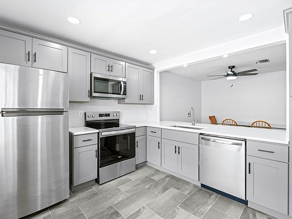 Welcome to this fully renovated 1st-floor condo in Golden Lakes 55+ gated community. Enjoy manned security, full amenities, and a prime location just minutes from vibrant Downtown West Palm Beach with its dining, shopping, and entertainment.This spacious unit features a west-facing waterfront view--perfect for watching the sunset from your screened back patio, complete with roll-down hurricane shutters. A rare front bonus patio adds even more outdoor living space. Inside, you'll find brand-new floors throughout, a stylish open kitchen with sparkling quartz countertops, stainless steel appliances, and a redesigned layout that flows into the dining area. Both bathrooms have been fully updated with new vanities, glass-enclosed showers, and modern fixtures. Additional upgrades include a new A/C 3yrs, updated lighting and ceiling fans, and a thoughtful renovation of the home's most valuable elementskitchen, bathrooms, appliances, and flooringleaving the next owner with minimal to-do's.