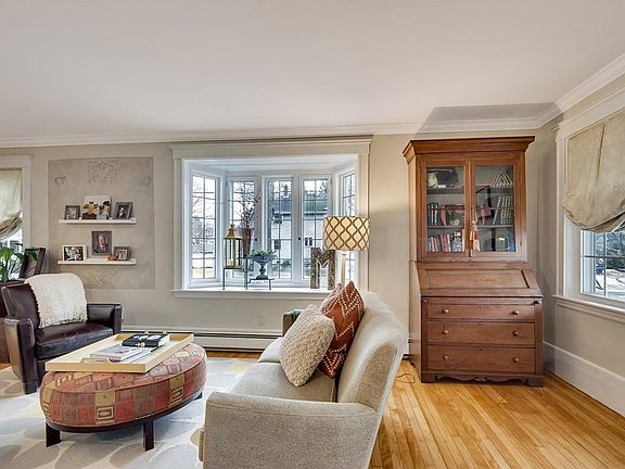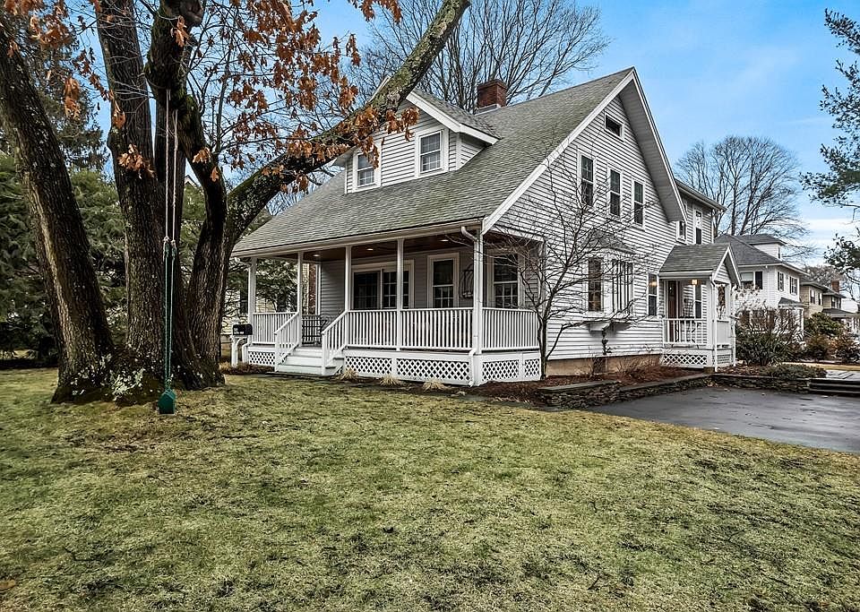 Front porch welcomes you to this much admired Village Colonial located in the desirable Mitchell School Neighborhood.The original home, built in 1900 retains many of the quality details of that period. Gorgeous stained glass widows, beautiful built ins, window seats, hardwood floors and lovely moldings are just a few of the many special features of this charming home. The first floor has a living room with fireplace, a formal dining room with built in china cabinet and sliders leading to the front porch. Updated kitchen w/ss appliances and granite counter tops. A large 1st floor family room has tons of windows to let in incredible natural light. 4 good size bedrooms and 2 full updated baths are on the second floor. Lower level is nicely finished with a playroom and artist's workshop. This charming home sits on a corner lot and is easy walking distance to all schools, town center, and commuter rail. HURRY! Showings by appointment only. Offers will be reviewed on Sunday at 6:00.