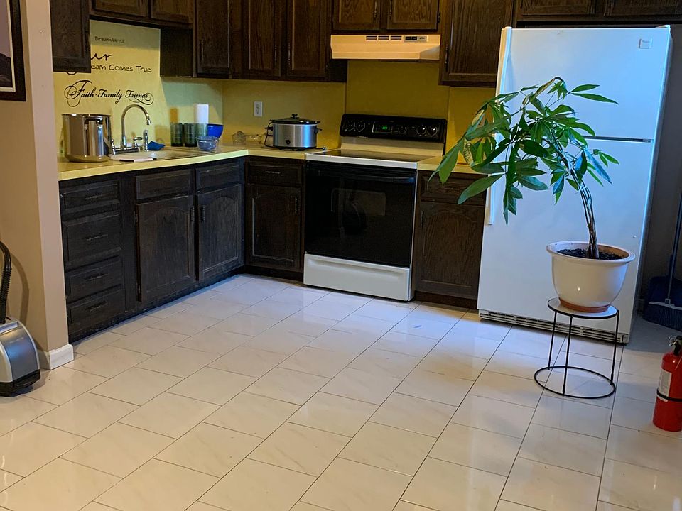 very very large one bedroom apartment , marble flooring ,full bath ,large kitchen ,large living room. ground floor utilizes included except cable 1 year lease can be renewed , all utilities included except cable ,central a/c no pets
