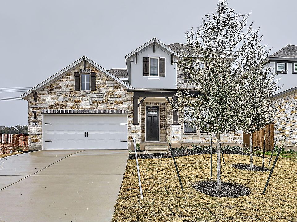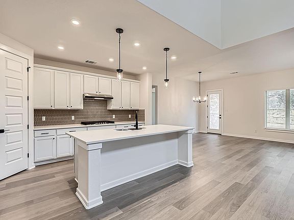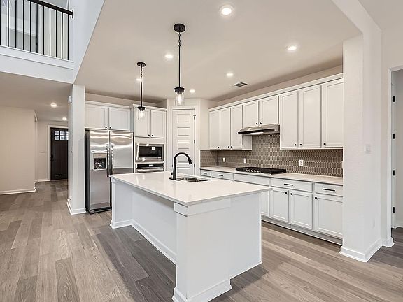 Stunning 2 story home with soaring ceilings, 3 bedrooms, private study, gameroom, 2.5 baths, 2 car garage with no neighbor behind. Large kitcehn island with built in gas appliances, covered back porch, covered front porch, open stair railing, 8' interior doors, large primary bath with separate tub and shower, LVP throughout first floor.