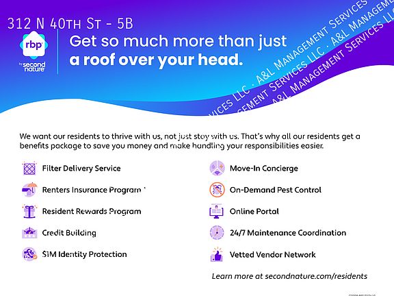 residents. Our program handles identity protection, pest control, air filter changes (if applicable), utility set up, credit building, rent rewards, and more at a rate of $40.00/month, added to every property as a required program. More details upon application