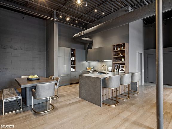 *This is currently a very large 1 bed/ 2 bath that can easily be converted into a 2 bedroom if preferred.* Welcome to this sleek and contemporary masterpiece that embodies the essence of West Loop's Fulton Market, residing in the heart of the city's best restaurants and shopping. Completely redone from top to bottom, this south facing penthouse includes an expansive open floor plan with soaring 14 foot ceilings, exposed brick, wood burning fireplace, and brand new french oak hardwood flooring throughout, creating a seamless flow connecting the living, dining, and kitchen spaces. Bathed in a ton of natural light, this is a sanctuary where you can unwind, entertain, and appreciate the finer things in life. The chef's kitchen is a dream, featuring custom cabinetry by Porcelanosa, beautiful Italian porcelain countertops, backsplash and waterfall island, Fisher and Paykel french door refrigerator and dishwasher, Signature Suite range, Brizo faucet, soft close doors, and LED under cabinet lighting. Make your way into the spacious primary bedroom which boasts large windows, designer ready walk-in closet, and a lavish en-suite bathroom complete with a floating vanity by Porcelanosa, large format Italian porcelain floors and walls, glass shower, and LED mirror. Additionally, the unit features a fully renovated second bathroom, Hunter Douglas electric shades, Brilliant Touch home control lighting, Nest thermostat, Ring doorbell, solid core doors with custom hardware, newer water heater and HVAC, and in-unit laundry. Enjoy stunning views of the city skyline from the common rooftop terrace just right outside your door! Located in the prime West Loop location with easy access to public transportation, parks, and an array of trendy restaurants, cafes, and boutique shops all at your fingertips!