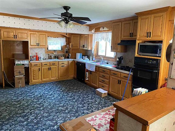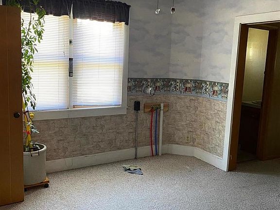 1 1/2 story home with 2 bedrooms close to schools & churches. Large kitchen bath, living room, laundry & bedroom on main level. Upstairs has bedroom & bath. Large double detached garage. Steel siding, metal soffits, heavy shingles, high efficiency furnace w/ central air.