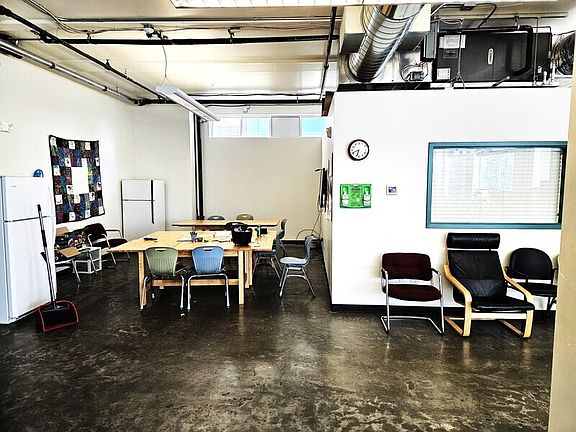 Open floor planKitchen with break roomHigh ceilingsOne office near reception