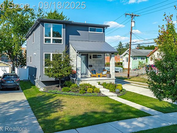 Experience the perfect blend of modern architecture and refined elegance in this striking contemporary home, ideally situated in the heart of Royal Oak. Designed with exceptional attention to detail, this residence showcases soaring ceilings, expansive windows, and an open concept layout that seamlessly blends style and functionality. The chef’s kitchen is a true showpiece, featuring custom cabinetry, premium quartz countertops, top-of-the-line stainless steel appliances, and an oversized waterfall island—ideal for both everyday living and entertaining. The primary suite offers a serene retreat with a spa-inspired bathroom boasting a soaking tub, glass-enclosed shower, dual vanities, and a generous walk-in closet. Additional bedrooms are thoughtfully designed to provide comfort and versatility. Luxury finishes, with plank hardwood floors, and designer lighting elevate every room. A detatched garage and energy-efficient features add to the convenience of this exceptional residence. All just moments from Royal Oak’s premier dining, boutiques, and vibrant nightlife. Conveniently located near I-75 and 696.