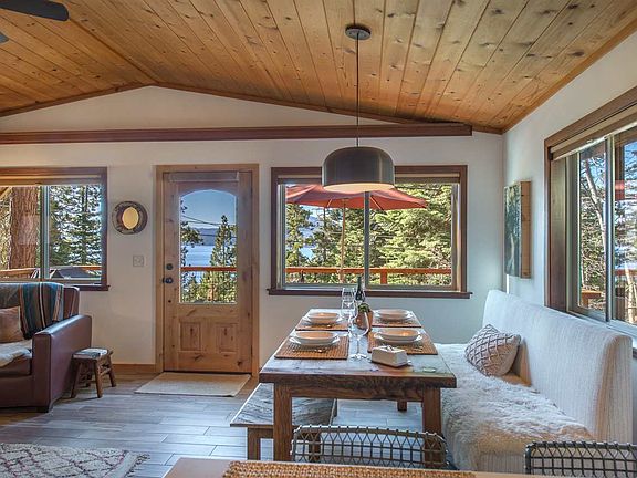 Darling cabin that sleeps 6 with remodeled kitchen, hot tub, deck and lake views! 2 bedrooms and queen pull out in bonus room, 1 1/2 bathrooms. Super cozy, fully furnished and with everything you might need. Close to Kings Beach, Brockway, Incline Village and more.