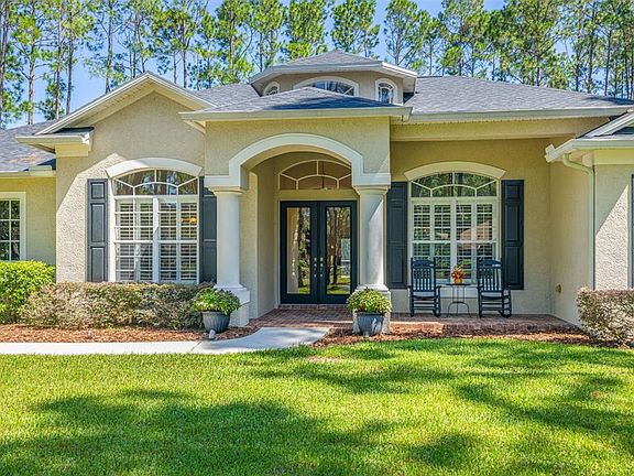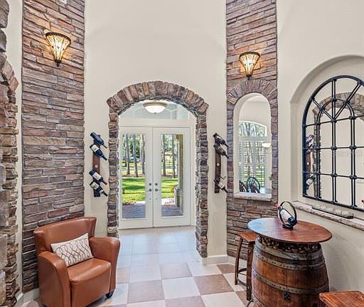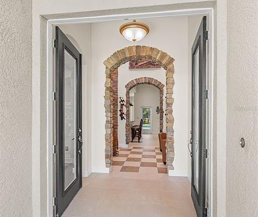 This one-of-a-kind custom estate, set on a wooded one-acre lot within a secure gated Lutz community, combines timeless architectural detail with modern comforts and exceptional care by its original owners. Just 30 minutes from Tampa International Airport, the home welcomes you with a grand rotunda featuring soaring 20-foot ceilings, while the Great Room, Dining Room, and Study/Office boast 12-foot ceilings and the remaining spaces gives 10-foot ceilings for a bright, open feel. Interior highlights include custom stonework in the Rotunda and Great Room accented by architectural beams. Flexible rooms for studies or creative use, and a separate wing with double French doors—perfect as a child’ retreat, guest suite, or in-law quarters. The thoughtfully designed layout also provides a designated space for a second refrigerator adjacent to the kitchen, along with a built-in security system. Outdoor living shines with an oversized enclosed athletic pool, a cozy firepit, and exterior accent lighting, while an invisible fence ensures pets can roam freely. Recent upgrades include a new roof (March 2025), a new HVAC system (April 2020), and a new water softening system (September 2025). Blending everyday comfort with elegant entertaining, this estate gives unmatched privacy and sophistication in a prime Lutz location close to shopping, dining, and Tampa conveniences.