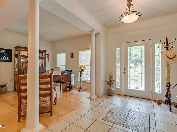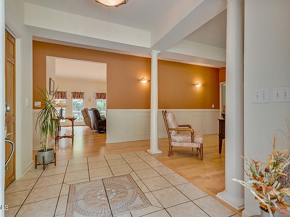 Custom-built home, all on one level, with split bedroom layout. Owners built this home to ADA standards throughout. Extensive kitchen remodel in 2019 to include beautiful hickory cabinets, quartz tops, gas range and a copper range hood, center island and bar with stacked stone. Lovely light maple floors throughout. 2 gas fireplaces, one in the master bedroom and one in the vaulted great room. Laundry room with utility sink, washer and dryer convey. Full unfinished basement. New roof and gutters in '22, New gas furnace and electric cooling unit '24, repaint interior and new exterior doors '22, water heater '21. (1490R/8223S)