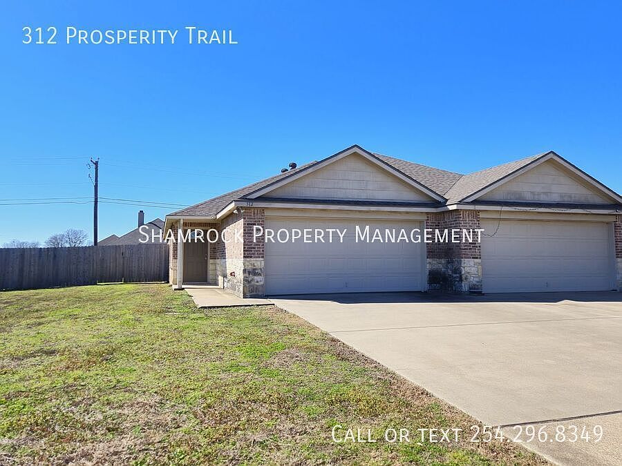 Located between Waco and McGregor along Highway 84! 3 Bedroom 2 bathroom duplex with a garage and fenced yard. Plank and tile flooring throughout the unit. Open living room to kitchen area. Kitchen includes refrigerator, stove/oven, dishwasher, microwave, and pantry. Master suite with elevated ceilings, walk-in closet, and a private bathroom. Built In 2006 Midway Isd Refrigerator Included