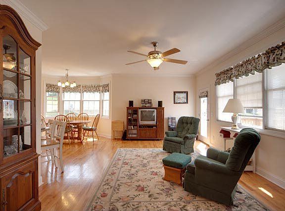 PRICE REDUCED for Quick Sale! Quality construction with nice features! Vaulted living room & gas fireplace, a transition area that could be formal dining or family/sitting area, breakfast nook & a great kitchen w/ custom cabinets & tile backsplash! Hardwood floors in main living areas! Living room also offers built-ins & surround sound! Full walk-out basement w/ roughed in 3rd bath! Awesome rear deck w/ great views!