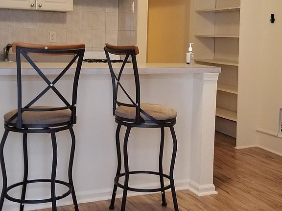 Newly painted with new wood floors. One (1) Bedroom with good closet space/storage, New Bath with Tiled Stall Shower. Laundry in Building and Storage area too. Two Air Conditioner units and Two (2) Ceiling Fans. Small outside patio area. Available now. Owner Pays- Heat, Cooking Gas & Cold & Hot Water. Tenant Pays- Electric