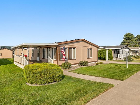 Welcome to this charming MFH that sits in a beautiful over 55 years old community. This home was just painted on the outside. Inside the home there is lots of natural light and vaulted ceilings. Rooms are very spacious throughout the home. Kitchen comes with all the appliances and has lots of counter space and storage. Master bathroom has a garden tub/shower on it for those that like to enjoy a nice hot bath. There has been some updating with the roof and heat pump being replaced in 2016. Outside the home there is a huge front covered deck to enjoy the outdoors on. There is also a covered carport and shed. Home sit in great location that is close to so many amenities.