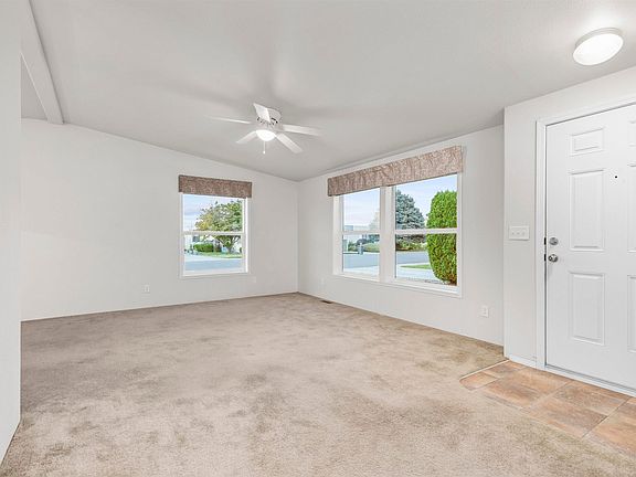 MLS# 287051 Priced significantly below market value to enable a quick sale, this is an excellent opportunity you won’t want to miss. Welcome to Desert Pines Mobile Home Park—Tri-Cities’ premier 55+ manufactured home community. This move-in ready residence offers 1,296 sq ft of comfortable living space, featuring 3 bedrooms and 2 full bathrooms. As you approach the home, you’ll be greeted by an inviting covered deck on one side and a convenient carport on the other, providing ideal protection for your vehicle. Step inside to a bright and spacious living area highlighted by vaulted ceilings and large windows that fill the space with natural light. The adjacent dining area is perfect for meals and gatherings, while the well-equipped kitchen features appliances, a breakfast bar, wood cabinetry, and a pantry for ample storage. The primary bedroom boasts a vaulted ceiling, an extra-large closet, and a private bathroom with a dual sink vanity, offering both comfort and convenience. A dedicated laundry area includes a washer and dryer for added functionality. Additional storage is available outside in a detached shed. Monthly lot fees cover garbage, sewer, water, and irrigation, making day-to-day living hassle-free. Ideally located near Columbia Center Blvd and Clearwater Ave in Kennewick, this move-in ready home places you within close proximity to a wide range of shopping, dining, and entertainment options. This property comes with a 1-year Home Warranty for added peace of mind, as well as a recent home inspection with all necessary repairs completed. Don’t miss your chance to make this wonderful home yours!
