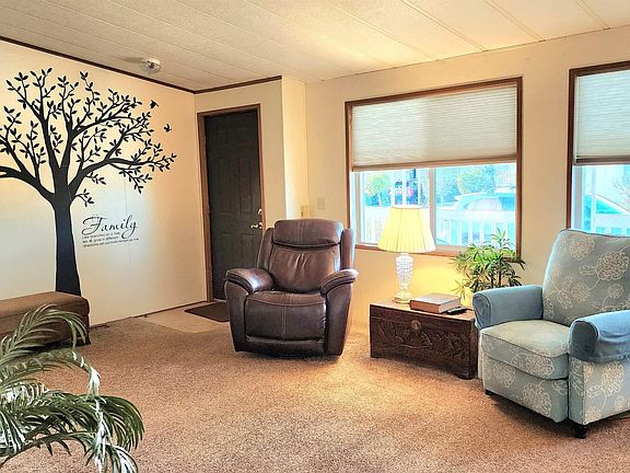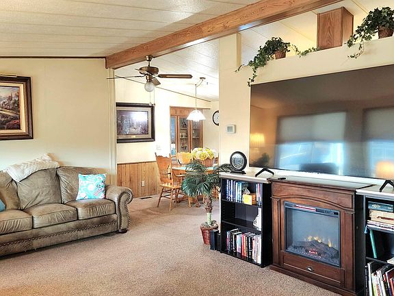 MLS #275958 This comfortable and spacious 2 bedroom, 2 bathroom home on a large corner lot boasts an open floor plan and cathedral ceilings, and sits with a generous covered front porch facing west to enjoy beautiful sunset views. The home has built-ins and ample storage inside, a shed for outdoor equipment and toys, and a carport with a ramp and steps to the back door for easy covered access. Don’t miss the chance to make this charming 55+ community home your own! Contact us now to schedule a viewing and experience the welcoming atmosphere and convenience this property has to offer.