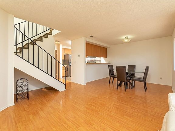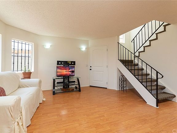 Welcome to this highly sought after Rancho Dominguez neighborhood. This two-story home has been updated including the kitchen and both baths. This excellent floor plan allows for many options with one large bedroom and bath downstairs and two bedrooms and "Jack & Jill" bath upstairs. The expansive master bedroom is adorned with lots of light, high ceilings and a balcony providing views overlooking a lovely rear yard. The interior and exterior were recently painted, as well as the finished two car garage. The kitchen remodel includes brand new stainless steel appliances, as well as new cabinets, granite counter tops and ceramic tile flooring. The master bath upstairs has an abundance of cabinets and granite counter tops. Laminate wood flooring adorns both floors. The downstairs bedroom has been upgraded to an office with built in shelving, drawers and large desk area. All bedroom closets are mirrored. Inside Laundry is a plus. The exterior is secured by rod iron fencing in front and block wall in the rear and security windows throughout. Nearby park and community swimming pool. This home is in move in condition. Come and get it!