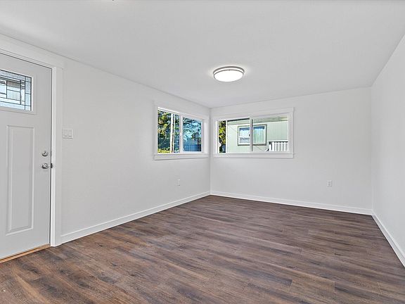 MOVE IN READY! Recently remodeled, this home with 3 bedrooms, 1 bath, 1 car garage, has many updates with a complete remodel completed in 2025, including new paint interior/exterior, roof, gutters, siding, paved driveway, windows, luxury LVP flooring, carpet, energy efficient LED lighting, plumbing fixtures, quartz counter tops, cabinets, stainless steel kitchen appliances. Fully fenced and professionally landscaped low maintenance back yard with a new patio and firepit. Great starter home or beach get away. Close to many amenities such as trails, lake, beach, shopping, post office, library, and more. Move in ready! 1 year basic home warranty included with acceptable offer!